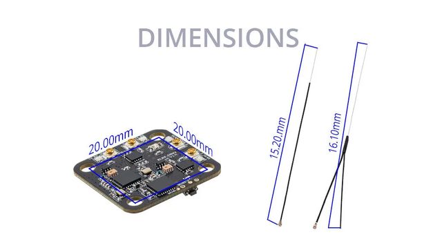 Сучасний дизайн і легкість встановлення: завдяки компактним розмірам і вазі, приймач легко інтегрується в будь-яку модель. Міжутворювальна відстань 20х20 мм спрощує монтаж навіть на малих платформах.